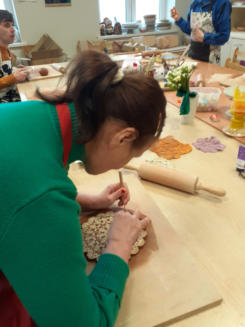 Saprotošās un atsaucīgās keramiķes Vija Bikse un Daina Zvejniece palīdzēja VSAC “Kurzeme” filiāles “Gudenieki” klientiem veidot mākslas darbus no māla!