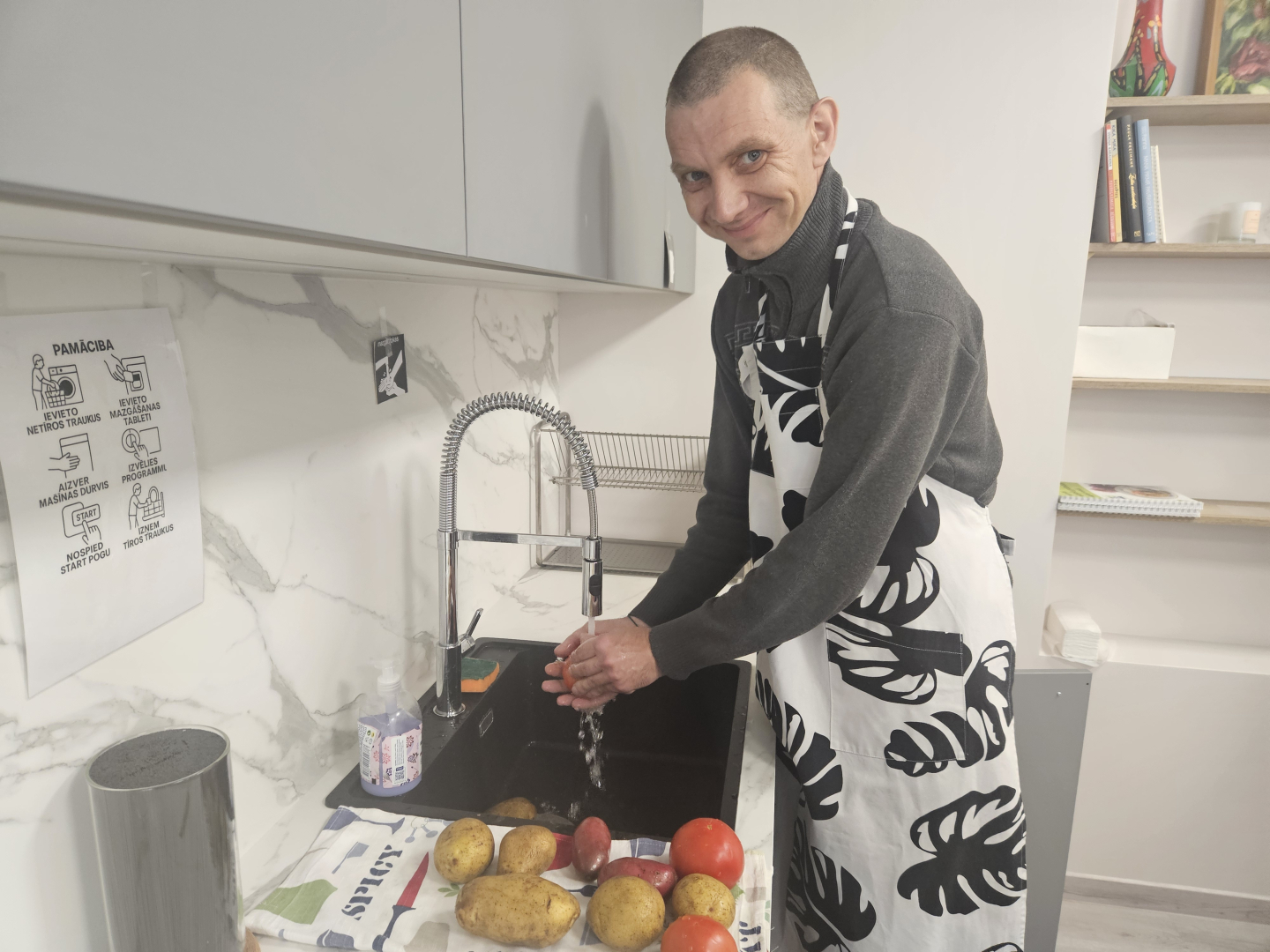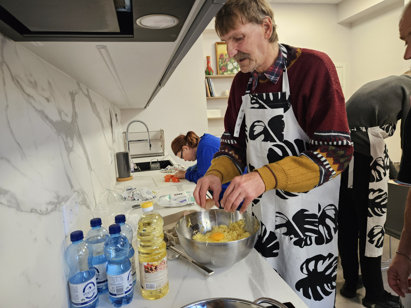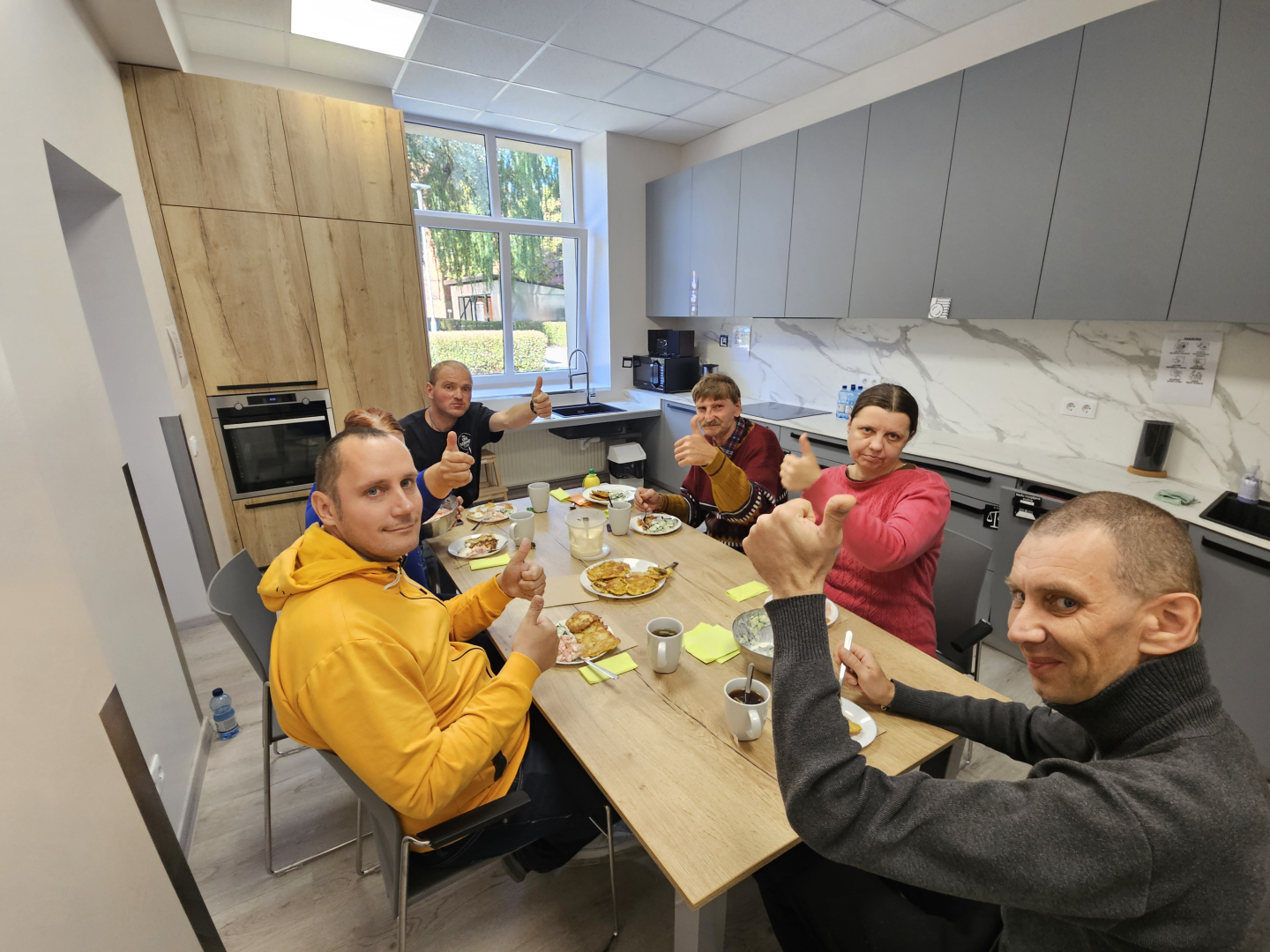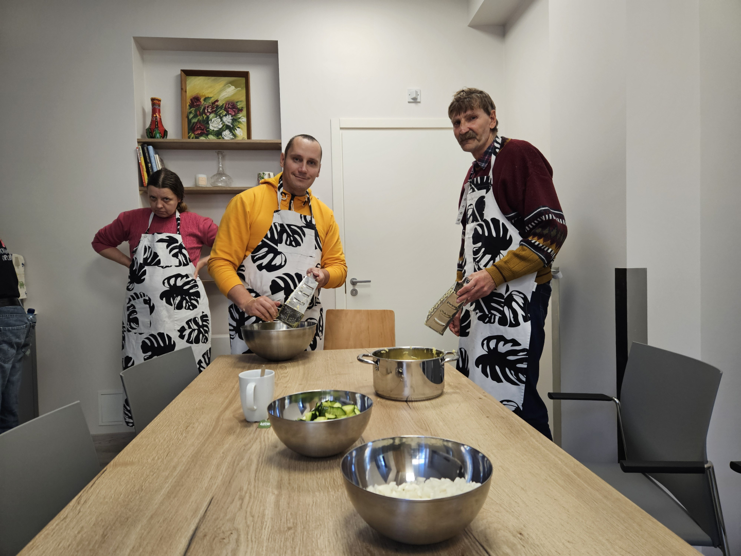 VSAC “Kurzeme” filiāles “Dundaga ” klienti darbojās filiāles “Liepāja” jaunajā virtuvē, kura izveidota pateicoties projektam “Jauns skatījums uz neaizsargāto grupu veiksmīgu rehabilitāciju” (INO-REHAB).