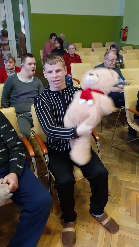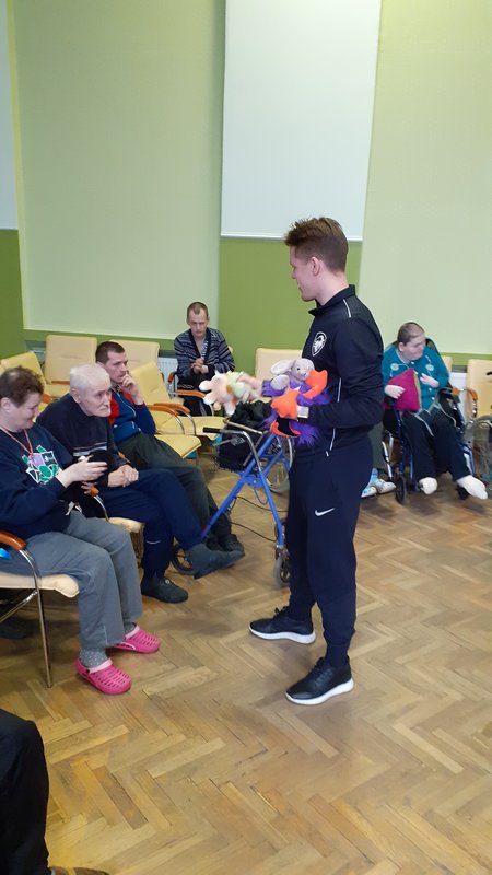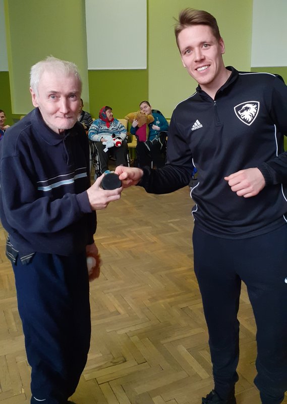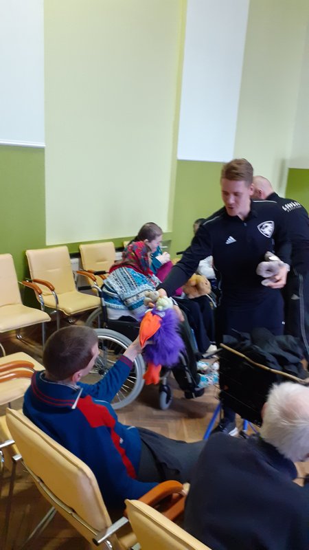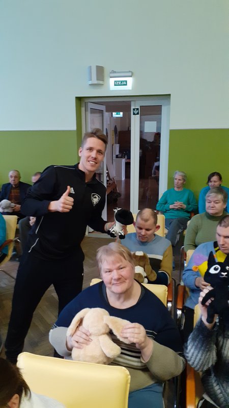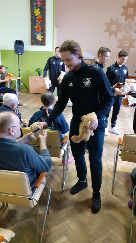 07.02.2020. VSAC ‘’Kurzeme’’ filiālē ‘’Iļģi’’ labdarības akcijas ‘’Lāči lido’’ ietvaros viesojās Liepājas hokeja klubs. Hokejisti mūsu aprūpes centra iemītniekus izklaidēja ar stāstiem par savām sportistu gaitām un piedzīvojumiem, kā arī iepriecināja ar dāvanām – akcijas ‘’Lāči lido’’ saziedotajām mīkstajām rotaļlietām, kas turpmāk sildīs mūsu klientu sirdis. Mūsu kaislīgais sporta fans Rihards tika pie īpašas dāvanas – hokeja ripas. Paldies sportiskajiem ciemiņiem un ceram uz turpmāku sadarbību!