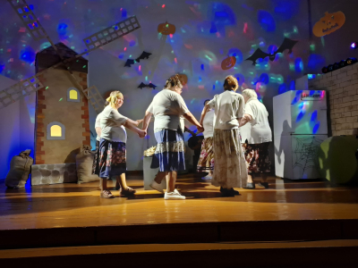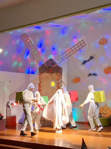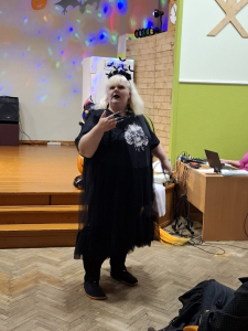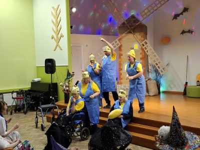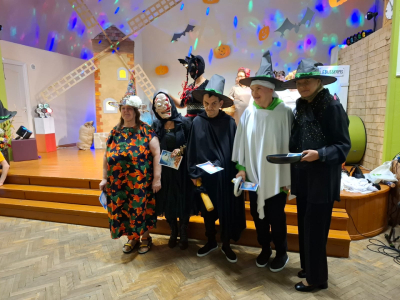 Centra iemītnieki sadarbojoties ar sociālā darba speciālistiem bija sagatavojuši priekšnesumus atbilstoši Helloween tematikai .