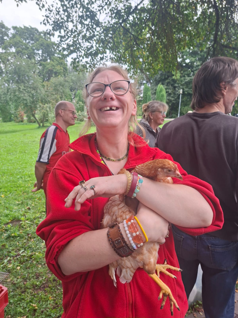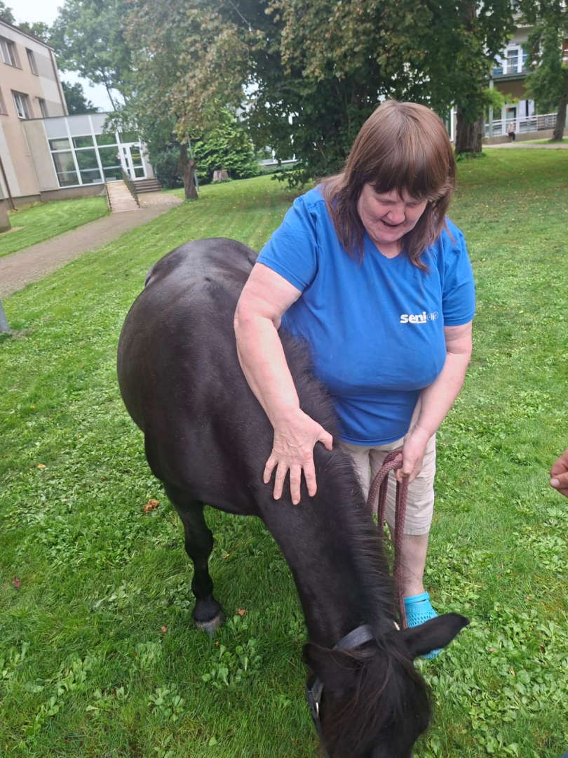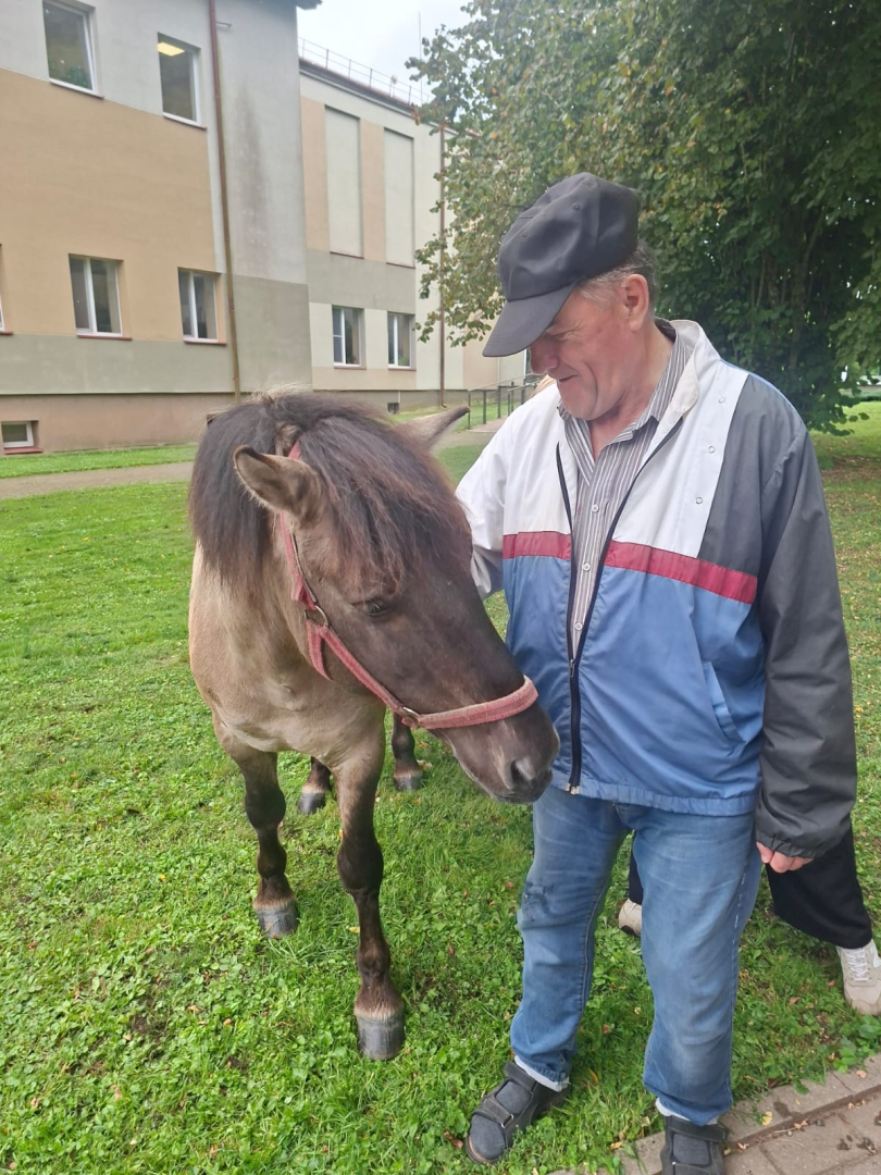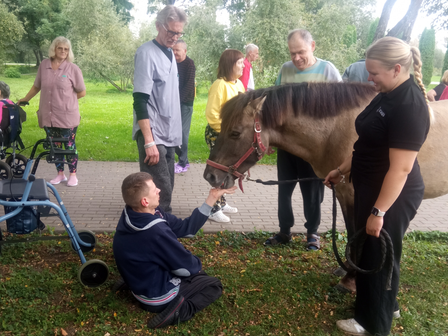 VSAC Kurzeme filiālē “Iļģi” 10.septembra pēcpusdienā bija ieradusies ZS Atvases saimniece Vizma Petrēvica kopā ar savām meitām atvedot līdzi savus mājdzīvniekus (zirgi, aita, truši, vistas) lai iepriecinātu mūsu centra ļaudis. Tā jau ir otrā ciemošanās reize, kurā bija iespēja dzīvniekus pabarot, samīļot, parunāties par dzīvniekiem – to raksturiem, kā pareizi barot, kas patīk/nepatīk mājdzīvniekiem. Tas bija mirklis, kurā visiem pavērās sejā smaids, prieks un labsajūta – mirklis, kurā padarījāt mūsu dzīvi krāsaināku.