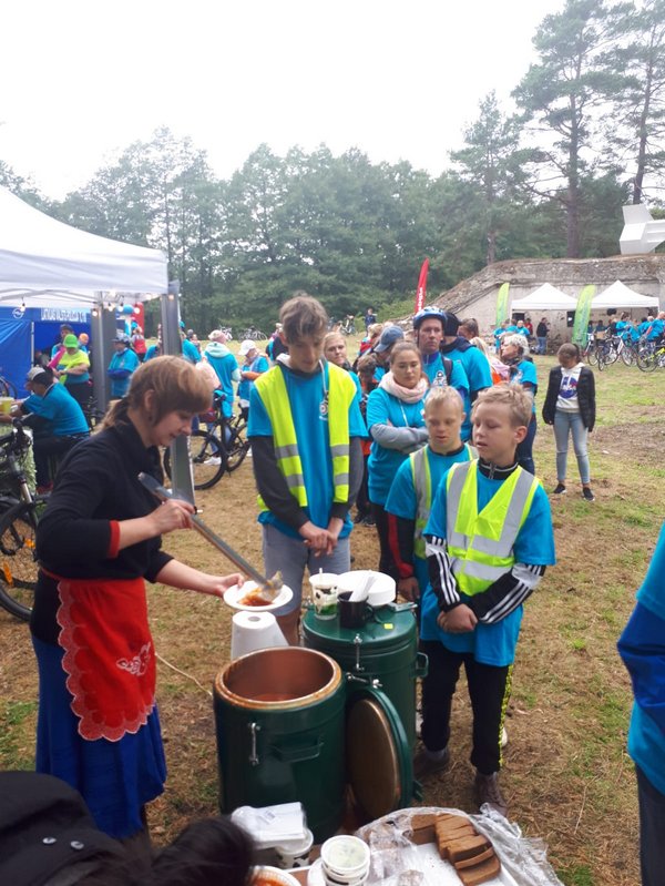 Galapunktā brašie braucēji tika cienāti ar zupu un siltu tēju.