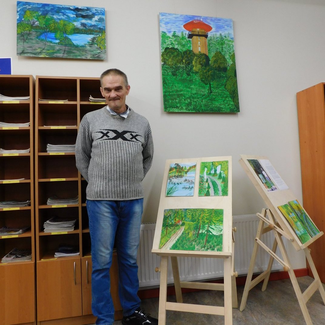 Rudenīgi saulainā dienā filiāles “Iļģi” interešu pulciņa audzinātājs Imants Liepiņš devās uz Grobiņas bibliotēku, lai kopā ar Grobiņas mākslinieci un dizaineri Initu Beihmani iekārtotu aprūpes centra iemītnieka Normunda Minajeva personālizstādi.