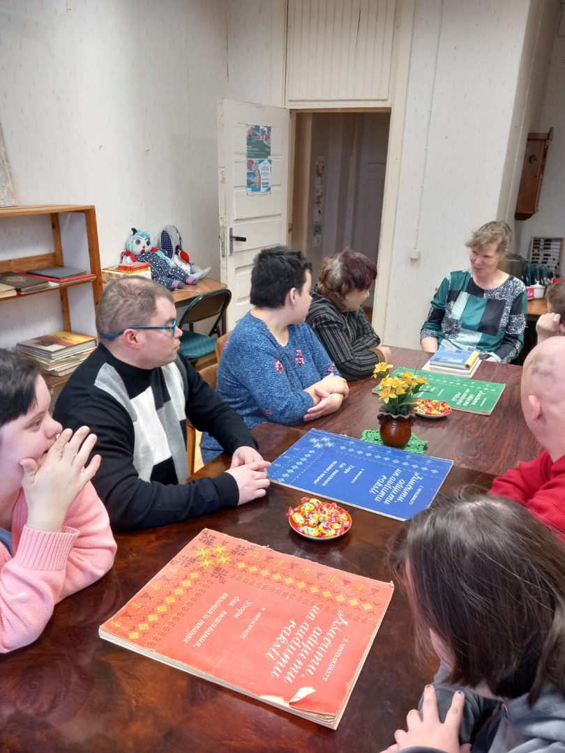 21 martā bibliotēkā notika tikšanās ar šiem māksliniekiem, A.Jefimovu, kurš veidoja aplicējumus un I.Sniķeri, izšūšana krustiņdūrienā. Abavas bibliotekāre sagaidīja mūs patiesu prieku, izjautāja Inu un Andreju cik ilgi un kas pamudinājis nodarboties ar šiem rokdarbu veidiem. Abi mākslinieki saņēma pelnītas godalgas – medaļas un diplomus. Bibliotekāre bija parūpējusies par interesantas un saturīgas nodarbes ar mērķi vai Tu arī tā proti. Zīmējām ornamentus, aplicējām vāzes, bibliotekāre mācīja no baloniem veidot sunīti.