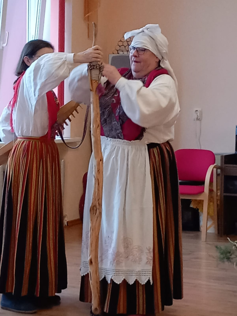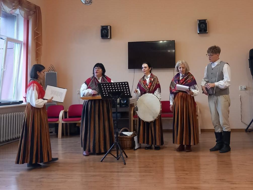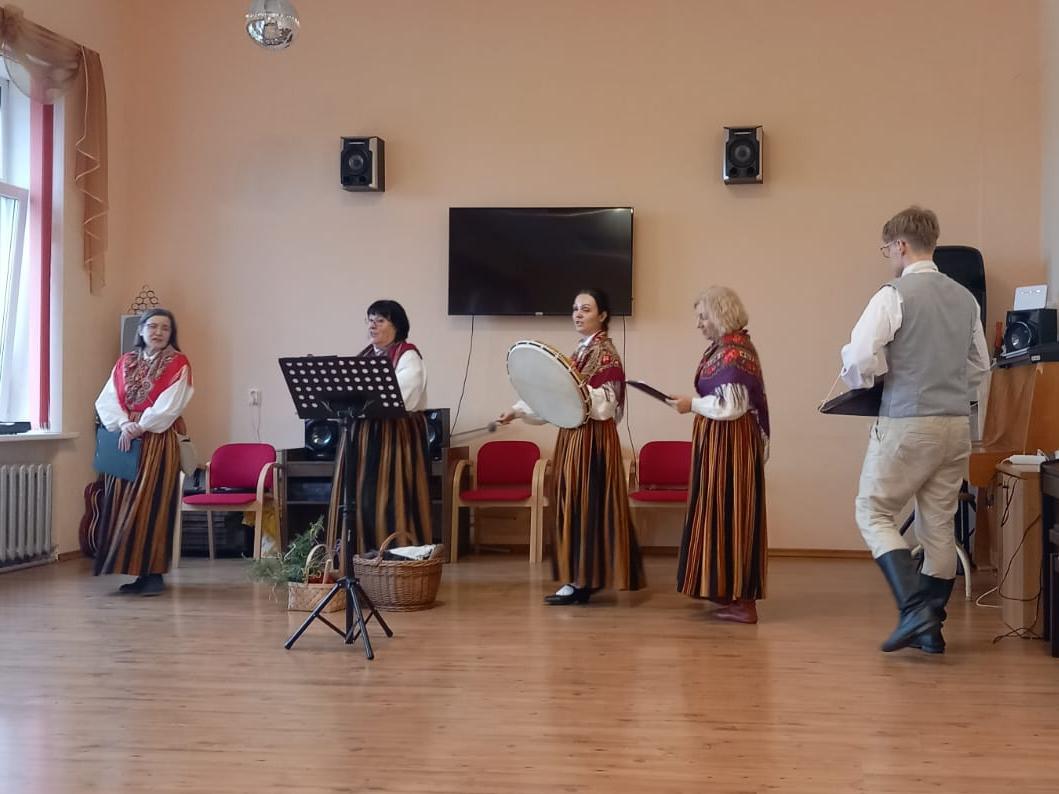 Folkloras kopas dalībnieki radīja patiesi mājīgu noskaņu - skanēja tautasdziesmas, rotaļu dziesmas senlatviešu stilā, kas lika mums visiem smaidīt un dziedāt līdzi.