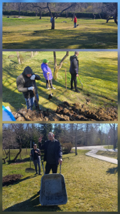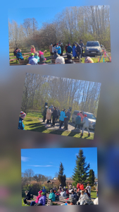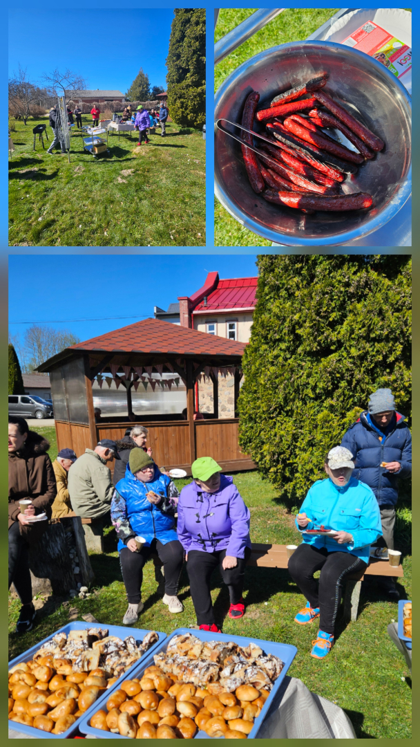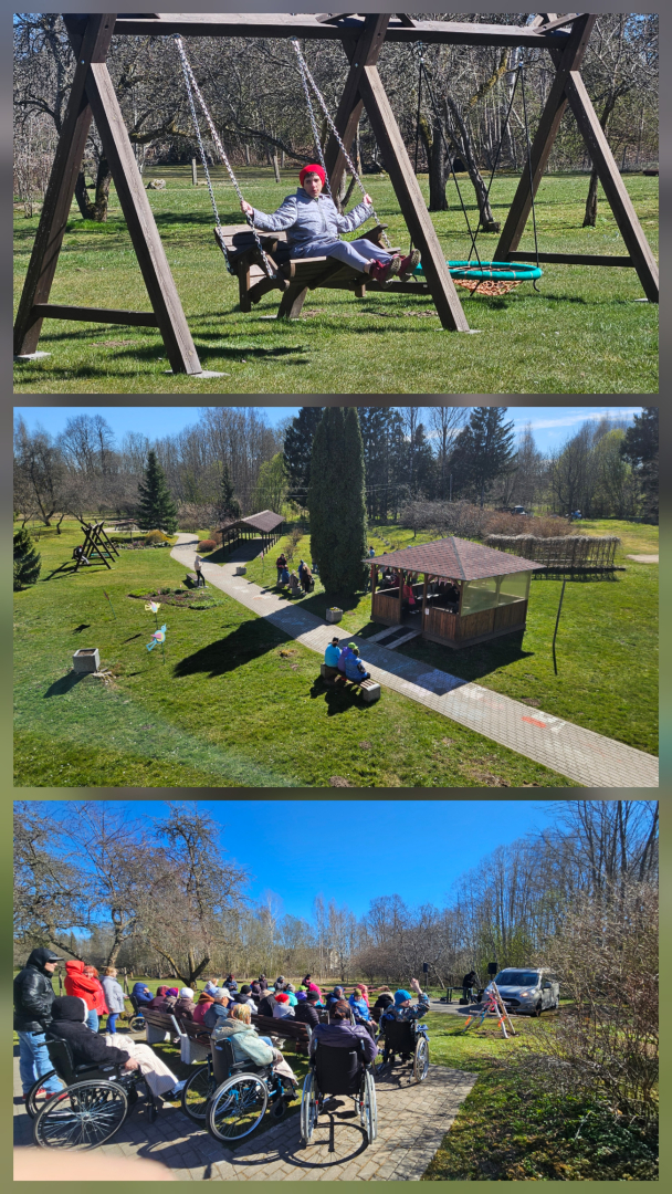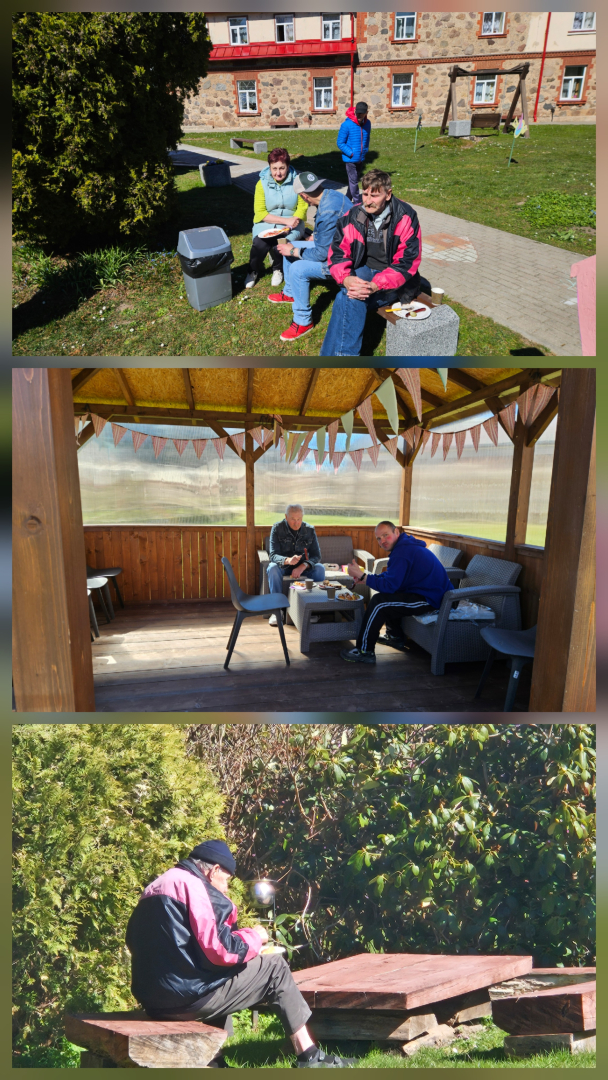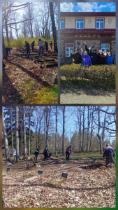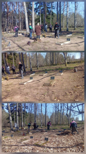 Nedēļas beigās sakopām filiāles teritoriju- stādījām puķes, sakārtojām ābeļdārzu, izlīdzinājām bedres un kurmju rakumus, sagatavojām lapeni jaunajai sezonai, izravējām zāli no estrādes bruģīša, ar pilnu atdevi tika tīrītas iekštelpas.