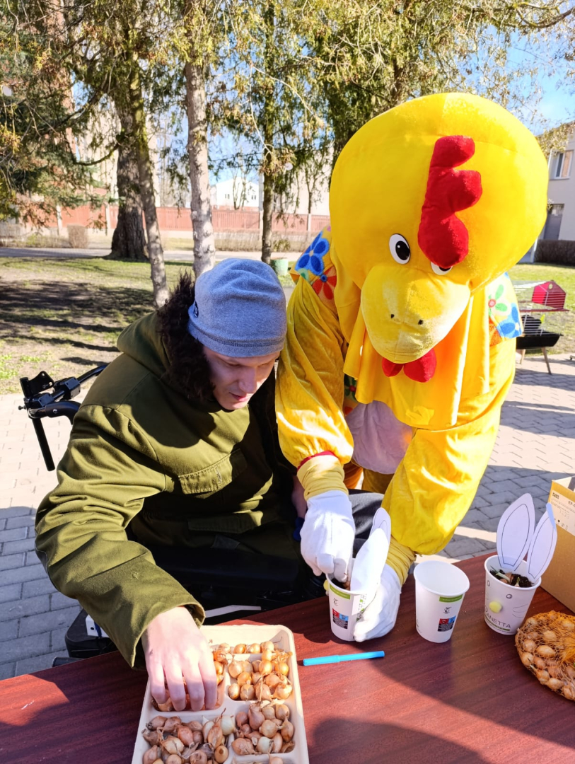 Filiālē “Liepāja” šodien valdīja īsta pavasara noskaņa, svinot Lieldienas sirsnīgā un radošā gaisotnē. Kā ik gadu, olas krāsojām izmantojot dabiskus materiālus – sīpolu mizas, dažādus graudus un zāles stiebriņus. Svētkos bija ieradies īpašs viesis – Cālis, kurš bija sarūpējis dažādas aktivitātes. Notika olu ripināšana, saldo olu meklēšana zem krūmiem un koku zariem, pagalma rotāšana. Katrs pats iestādīja “zaķu glāzītē” lociņus, simboliski ienesot sev līdzi pavasara garšu. Atklājām grilēšanas sezona, cienājoties ar gardām desiņām. Liels paldies Mini Zoo “Atomi” par vistiņām un trušiem, kas bija gaidīti viesi mūsu pagalmā.