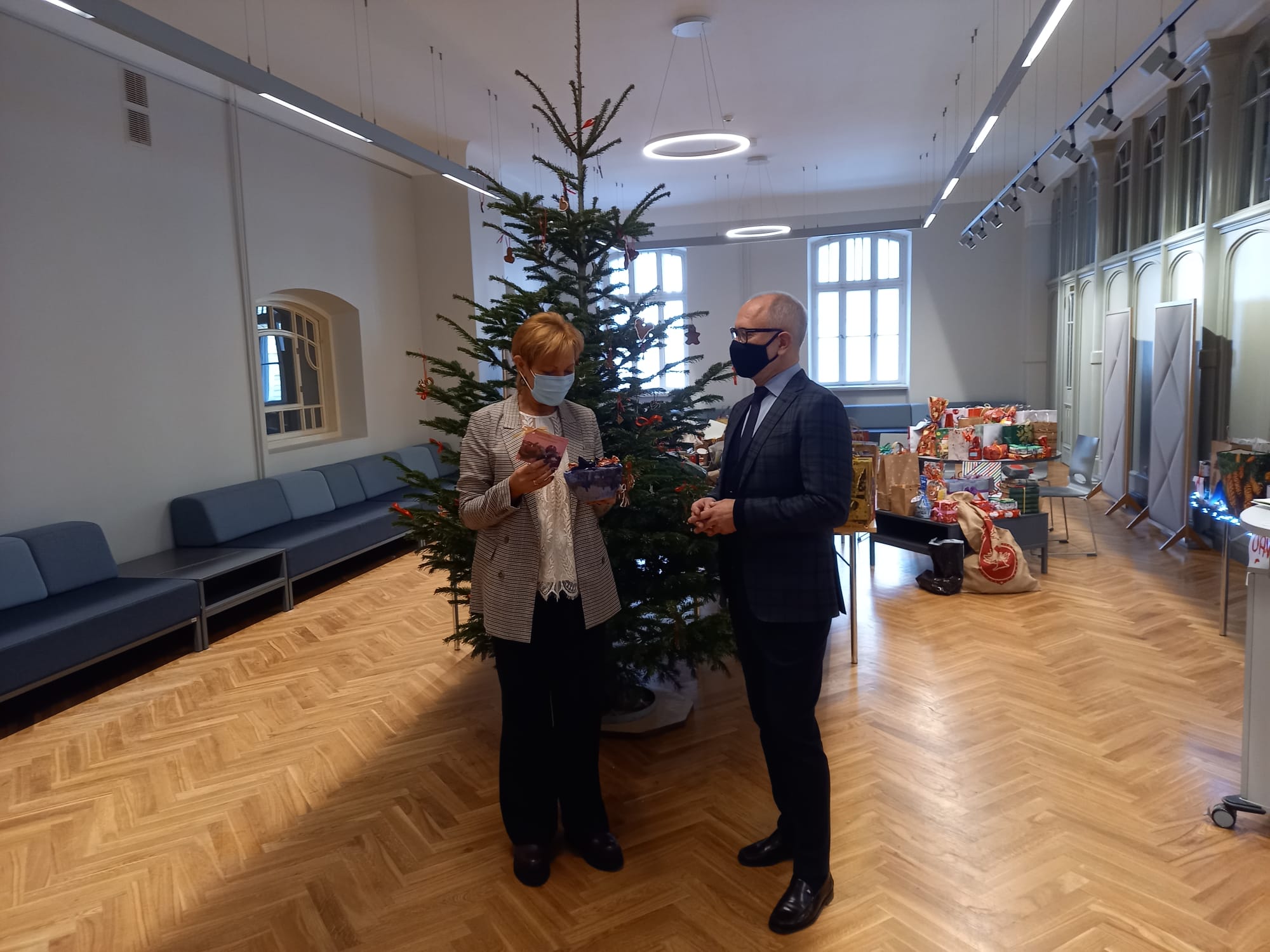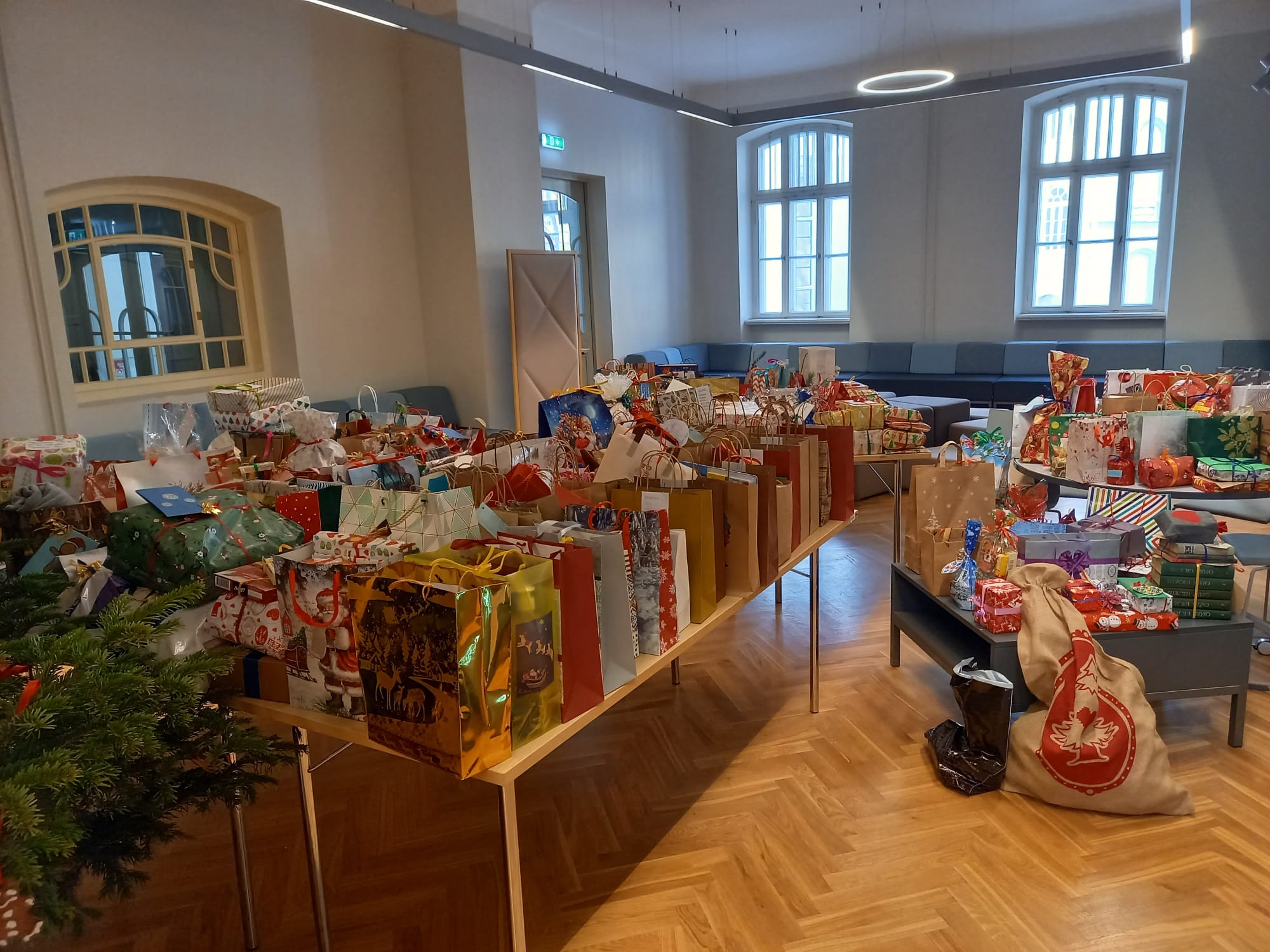 21. decembris sagādāja vēl vienu elpu aizraujošu notikumu - atkaltikšanās Liepājas Valsts 1.ģimnāzija, kur mūs, kā katru gadu, gaidīja milzīgs, tiešām MILZĪGS, skaits skaisti iesaiņotu dāvanu, ko sarūpējuši skolas audzēkņi kopā ar vecākiem un viņu pedagogi. Un no visām šīm dāvanām ir jūtams svētku starojums, ko dāvinātājs ir vēlējies svētkos nodot mūsu cilvēkiem un iepriecināt viņus ar noderīgām lietām sadzīvei, laika īsināšanai un saldiem tējas brīžiem. Cik jauki, ka skola nodrošina ne tikai uz kompetencēm, bet arī uz vērtībām balstītu izglītību, iedibinot šādas tradīcijas.