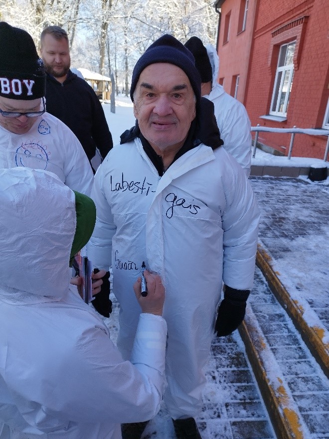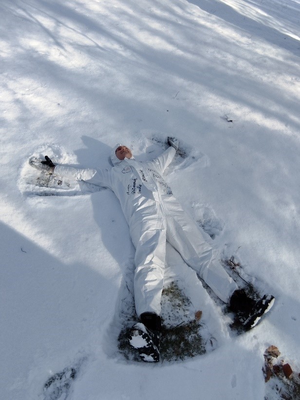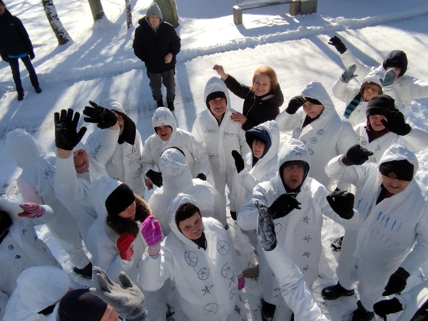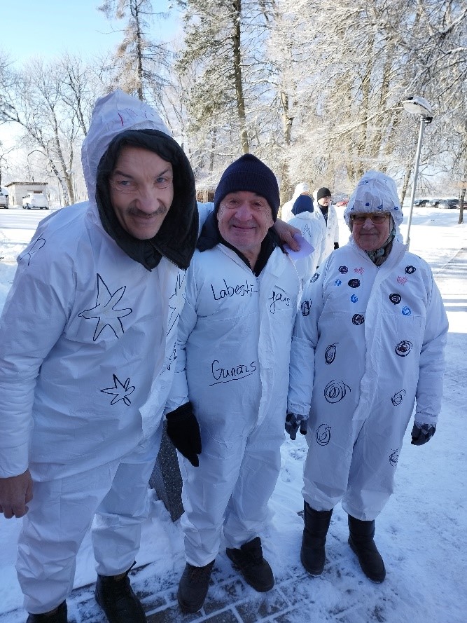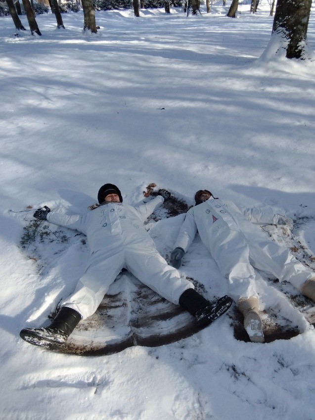 Gājām kopīgā sniega rotaļā – priecājāmies par saulaino ziemas dienu un veidojām sniegā eņģelīšus.