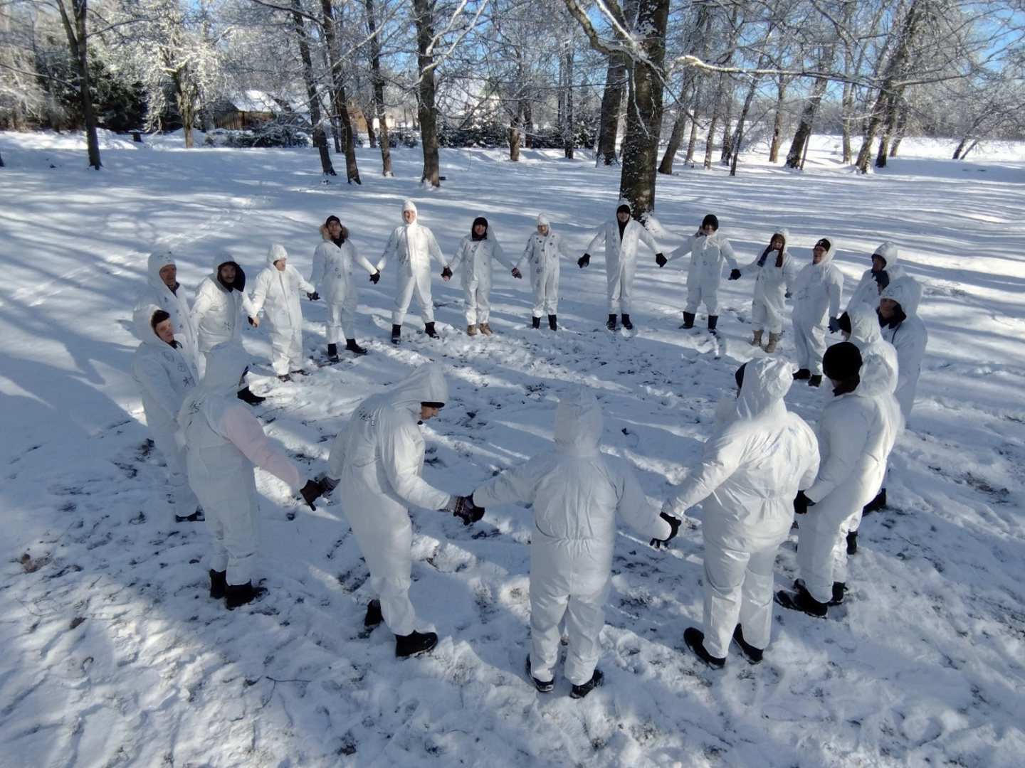 Klienti ietērpās baltos kombinezonos, lai pasargātu sevi no slapjuma un aukstuma un brīvi varētu atveidot un zīmēt sniegā eņģelīšus. Klienti viens otru apzīmēja un brīvi izpaudās savās radošajās fantāzijās tērpu izdaiļošanā.